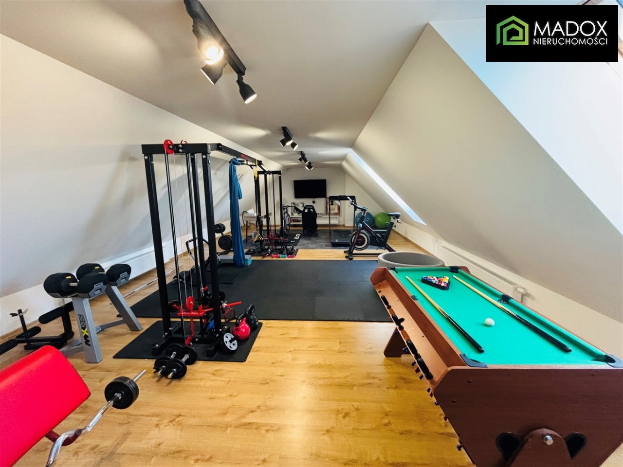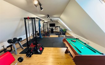 - strych zaaranżowany na strefę fitness z dodatkową przestrzenią do przechowywania;