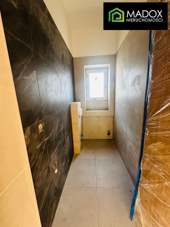 Budynek do indywidualnego wykończenia; wszystkie instalacje są nowe, nowe wylewki, tynki; stolarka okienna plastikowa nowa (okna Veka), łazienki częściowo wykończone. Przygotowana instalacja pod ogrzewanie podłogowe -gazowe. Budynek ocieplony, otynkowany. Wysokość pomieszczeń w najwyższym punkcie 3,20 m, w najniższym 3 m. Teren posesji wyłożony kostką brukową, ogrodzony, wjazd zamykany bramą sterowaną automatycznie.