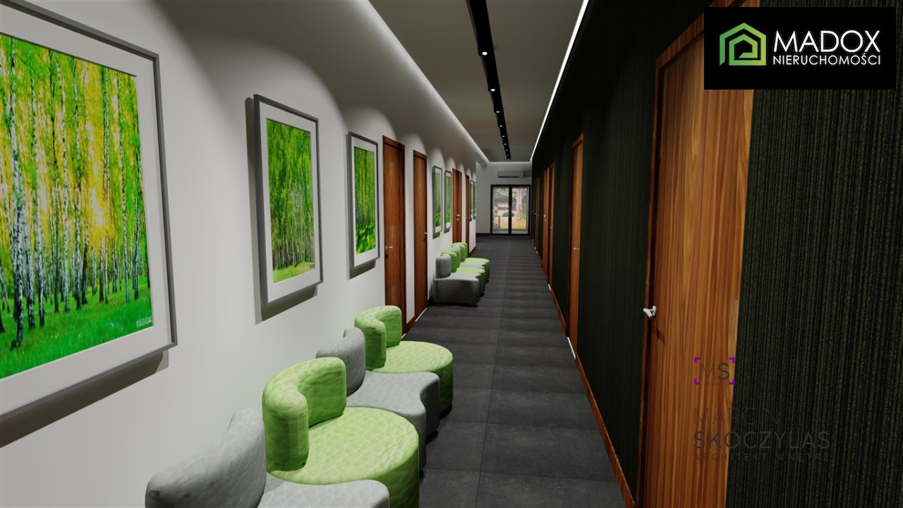 Budynek funkcjonował kiedyś jako przychodnia, a obecnie posiada gotową wizualizację pod nowoczesną placówkę medyczną, co czyni ją idealną propozycją pod : gabinety lekarskie i specjalistyczne, rehabilitację, fizjoterapię, laboratorium, ale także doskonale sprawdzi się jako biura, kancelaria, szkoła, przedszkole, usługi.