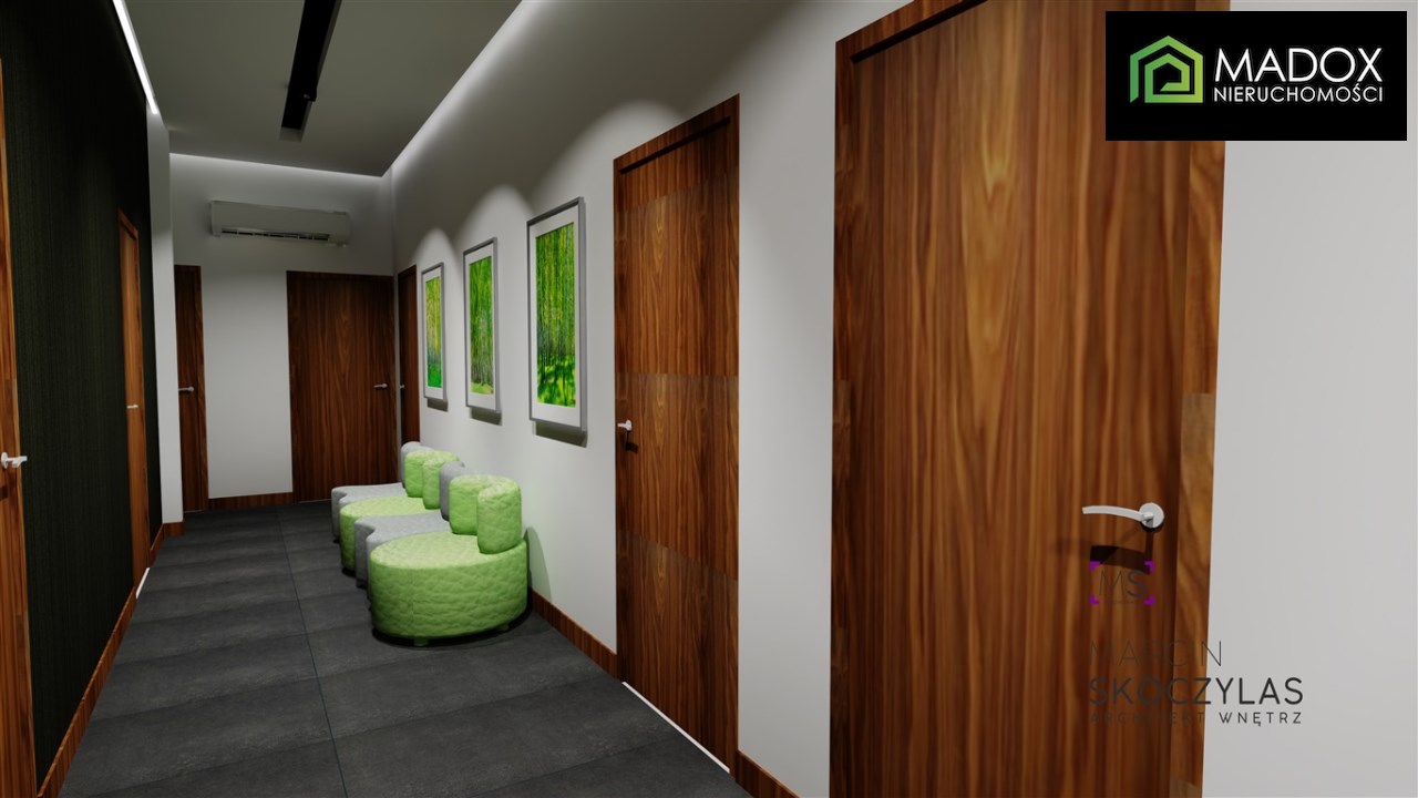 Budynek funkcjonował kiedyś jako przychodnia, a obecnie posiada gotową wizualizację pod nowoczesną placówkę medyczną, co czyni ją idealną propozycją pod : gabinety lekarskie i specjalistyczne, rehabilitację, fizjoterapię, laboratorium, ale także doskonale sprawdzi się jako biura, kancelaria, szkoła, przedszkole, usługi.
