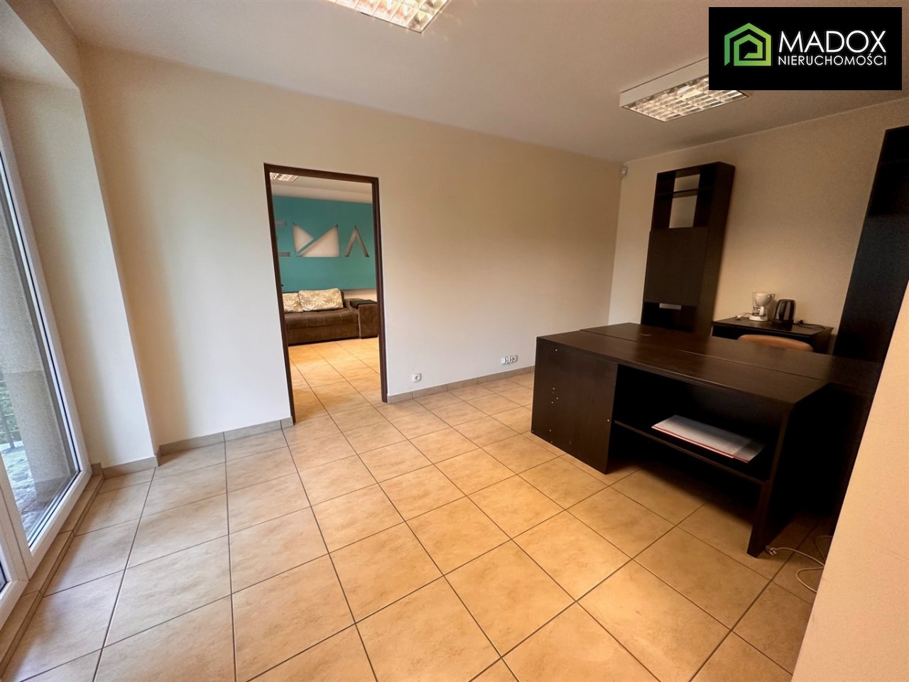 - dwa pokoje/ biura w układzie przejściowym, z jednego z biur wyjście na duży, prywatny taras;