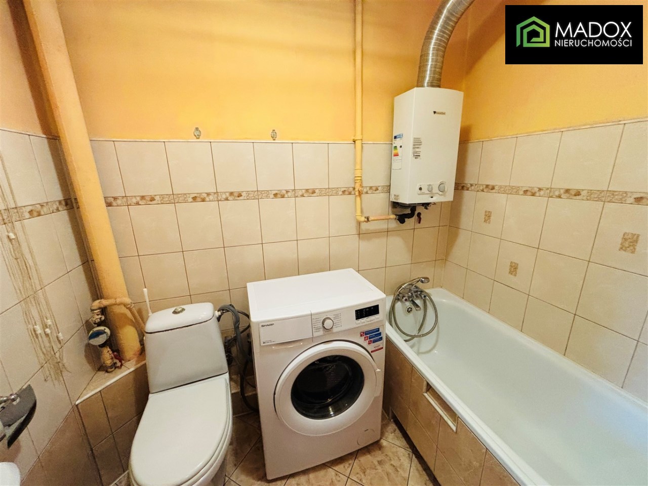ŁAZIENKA z wc, w kilkuletniej glazurze, nowy piecyk gazowy; na wyposażeniu pralka;