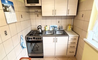 STANDARD WYKOŃCZENIA- stolarka okienna plastikowa oraz drewniana (wystawa okien na stronę wschodnią), wymienione drzwi wejściowe; na podłodze w pokoju oraz w przedpokoju panele, w kuchni terakota; łazienka w jasnej, zadbanej glazurze; 2 lata temu wymieniony piecyk gazowy (Junkers);
