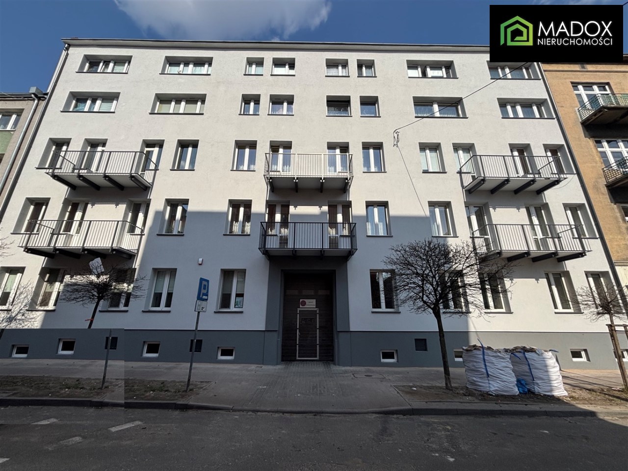 Blok świeżo po termomodernizacji, zamontowane nowe barierki;