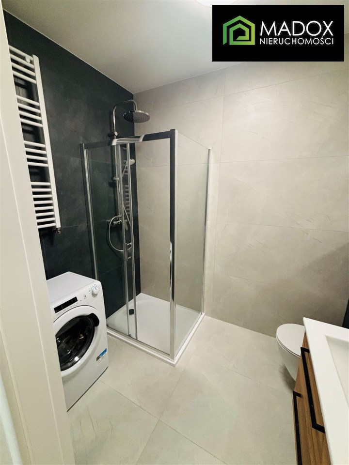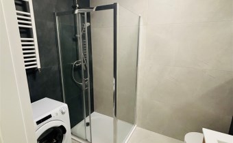 ŁAZIENKA (nowoczesna kabina prysznicowa, pralka, umywalka z szafką)